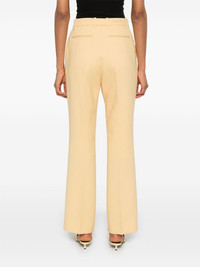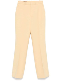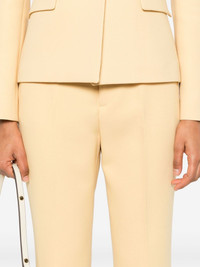 crepe wool trousers Highlights - Butter yellow - Wool - Crepe texture - Concealed front button, hook and zip fastening - Belt loops - Pressed crease - Two side inset pockets - Two rear jetted pockets - Straight leg Made in Italy Composition Lining: Acetate 75%, Silk 25% Outer: Wool 100%, Polyester 100%, Polyurethane 100% SIZE & FIT Model measurements Height 5 ft 10 in(1.77 m) Bust/Chest 33.07 in(84 cm) Hips 37 in(94 cm) Waist 24.8 in(63 cm) FittingInformation Designed with a bootcut leg, these trousers allow for a close fit at the waist and with an unrestricted, comfortable fit and additional room at the calves Made from a midweight non-stretch fabric