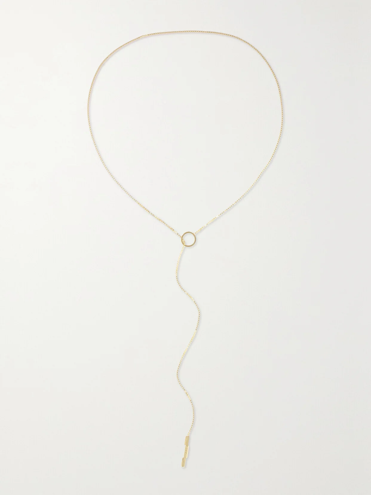 Gucci's necklace is part of the label's 'Link to Love' collection, which explores modern romance. It has been made in Italy from polished 18-karat gold and strung with a slim bar etched with the brand's name. The chain is adjustable, so you can wear it shorter or longer, depending on what you're layering it with.