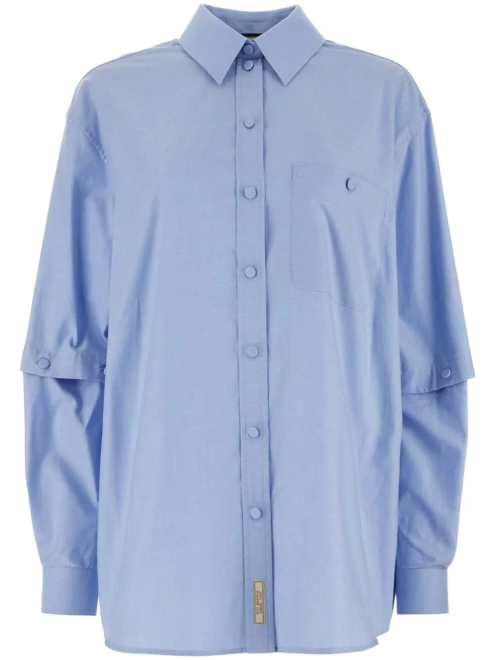 logo-patch detachable-sleeve shirt Highlights - Blue - Cotton - Poplin texture - Logo patch to the front - Straight-point collar - Front button fastening - Chest patch pocket - Detachable sleeves - Straight hem Made in Italy Composition Cotton 100%