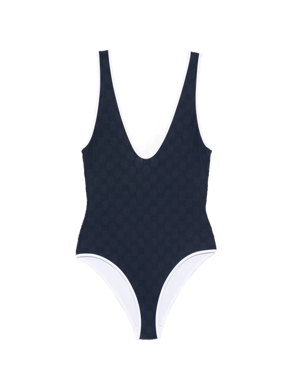 logo-pattern bikini Highlights - Dark blue - Patterned - Sleeveless - V-neck - Low back - Be mindful to try on swimwear over your own garments. Made in Italy Composition Outer: Polyamide 95%, Elastane 5% Lining: Polyester 77%, Elastane 22%