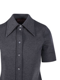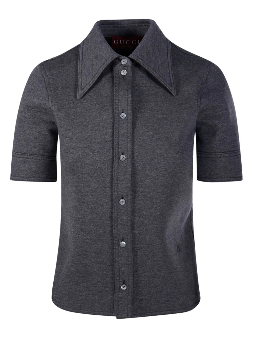 button collar shirt Highlights - Stone grey - Button fastening - Short sleeves - Polo collar - Topstitch detail Made in Italy Composition Fabric 100% Washing instructions Read Manufacturer Guidelines