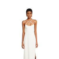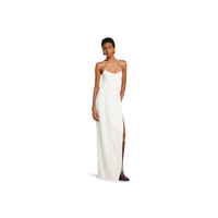 A monochrome palette with subtle details, such as embroideries or logo hardware, transitions the wardrobe from day to night in a selection of pieces from the Pre-Fall 2025 collection. This elegant viscose silk dress features a crystal Horsebit detail at the center of the neckline. - Ivory viscose silk - Lined - Thin shoulder straps with crystal Horsebit detail - Side zip closure - Long - Made in Italy