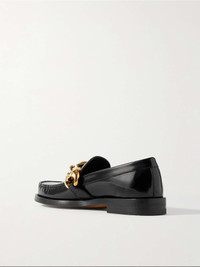 EDITORS'NOTES Gucci's loafers are embellished with chunky gold-tone 'Marina' chain links across the vamp, adding a bold statement to the otherwise classic design. They've been crafted in Italy from smooth glossed-leather and rest on stacked, low heels. Style yours with everything from jeans to dresses. SIZE & FIT - Fits true to size, take your normal size - Italian sizing DETAILS & CARE - Heel measures approximately 20mm/ 1 inch - Black glossed-leather (Cow) - Slip on