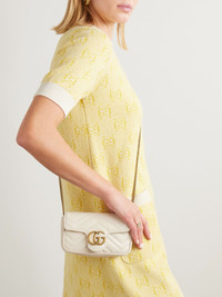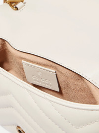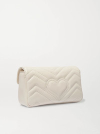 This mini version of Gucci's 'GG Marmont' bag can be worn so many different ways - use the keyring to attach it to a larger style, double up the strap and wear it around your waist, or simply carry it cross-body. It's been made in Italy from supple quilted white leather and opens to a compact interior that'll hold the essentials - think your phone, cardholder and lipstick. Size & Fit This item's measurements are: Details & Care - White leather (Calf) - Snap-fastening front flap - Weighs approximately 1.3lbs/ 0.6kg - Made in Italy
