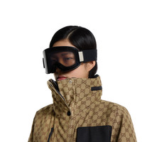 Gucci Altitude, the House's first winter sportswear collection, combines advanced performance and signature codes. Here the matte black injection frame is decorated with a Gucci logo on a metal plaque, while an adjustable black elastic strap appears at the back. A solid smoke lens completes this style. - Matte black injection frame - Gucci logo on metal plaque and adjustable black elastic strap - Solid smoke lens - 100% UVA/UVB protection - GG1974S - Lens height: 3.6" - Frame height: 3.8"; Frame width: 7.1" - Made in Italy - The soft black pouch is complete with an elastic drawstring, the Gucci logo and Interlocking G details.