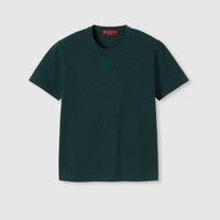 In the Fall Winter 2025 collection, this short-sleeved T-shirt is crafted from medium cotton jersey. Inspired by ‘70s silhouettes, the style features an Interlocking G embroidery on the chest. - Dark green medium cotton jersey - Interlocking G embroidery - Crewneck - Short sleeves - Length: 21.5"; based on a size S - Made in Italy