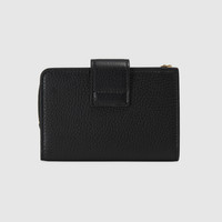 This medium wallet in black leather features a bamboo zip closure, paying homage to a material at the heart of Gucci’s heritage. Designed with plenty of interior slots and a zip pocket, the accessory is completed by a gold-toned Double G monogram hardware on the snap button closure. - Black leather - Gold-toned hardware - Moiré lining - Double G - Inside: 8 card slots, 2 bill compartments and 1 zip pocket - Zip closure with bamboo puller - Snap button closure - Open: 6.7"W x 3.3"H - Closed: 5.1"W x 3.3"H x 0.8"D - Made in Italy - Weight: 0.24lbs approximately