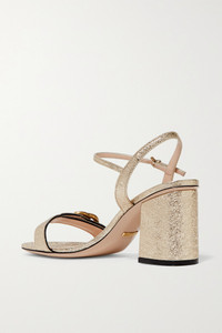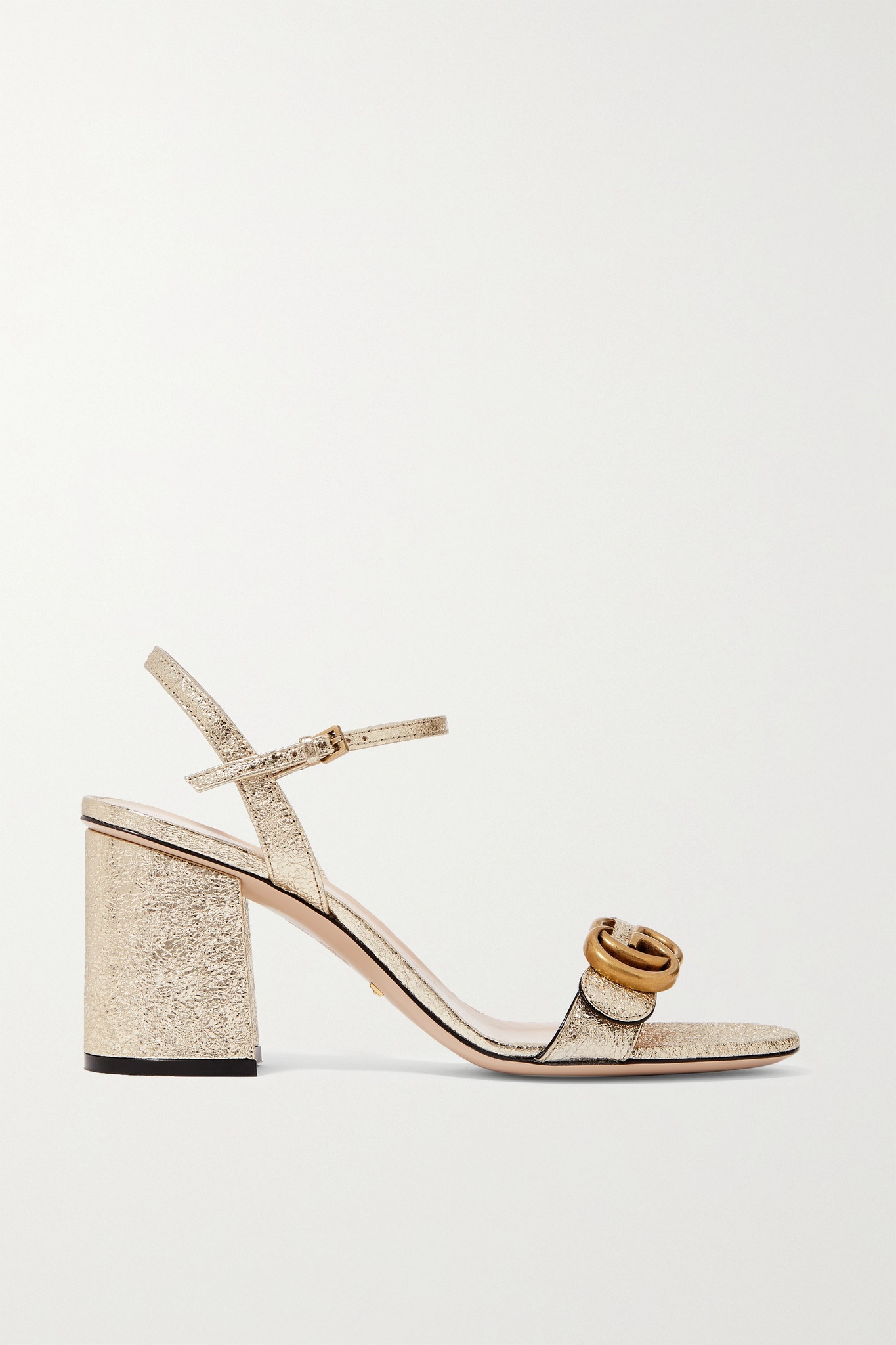 EDITORS'NOTES Gucci's 'Marmont' sandals have a chunky block heel to balance out the dainty straps. This pair is instantly recognizable by the iconic 'GG' hardware and made from high-shine gold cracked-leather. Wear them with skirts, jeans and tailoring. SIZE & FIT - Fits small to size, take a half size larger than normal - Italian sizing DETAILS & CARE - Heel measures approximately 75mm/ 3 inches - Gold cracked-leather - Buckle-fastening strap