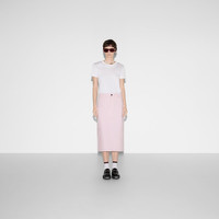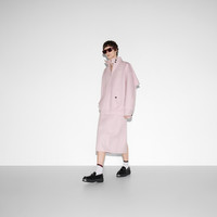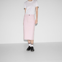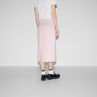 The Gucci Cruise 2025 women's collection infuses everyday ready-to-wear pieces with color-blocking. The combination of unexpected yet balanced hues expresses dynamism through pastel colors and different textures, like this skirt in light pink cotton canvas delave. - Light pink cotton canvas delave - Gucci embroidery on back pocket - Belt loops - Two large front pockets - Two back pockets - Rear vent - Button and zip closure - Mid-length - Length: 28.3"; Waist: 29.5"; Hips: 37" based on a size 38 IT - Made in Italy