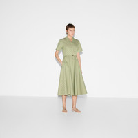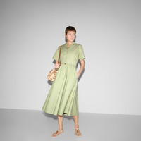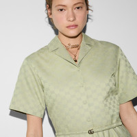 The GG monogram reinterprets the House’s history of elegance and craftsmanship. This mid-length dress is presented in a GG cotton gabardine with a detachable belt with a gold-toned Double G buckle. - Green GG cotton gabardine - Self-covered buttons - Unlined - Notch collar - Dropped shoulder - Short sleeves - Detachable belt with gold-toned Double G buckle - Two side pockets - Half circle hem - Button closure - Mid-length - Length: 50.3"; Shoulder: 15.7"; Chest: 37.0"; Waist: 29.1"; Sleeves length: 17.7"; based on a size 40 IT - Made in Italy - The product shown in this image is a size 40 (IT)