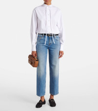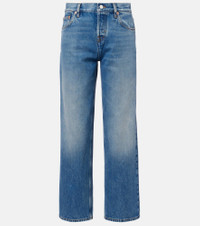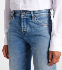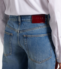 Gucci's designs balance timeless quality with a bold vision for the future. These straight jeans feature a mid-rise waistline and stand out for their washed-out finish. Product Details - Material: 100% cotton - Care instructions: dry clean - Made in Italy - Designer color name: Light Blue - Item color: blue - Pocket lining: 65% polyester, 35% cotton - Details: 100% calf leather - Contains non-textile parts of animal origin - Item number: P01052643 Size & Fit - Fits small to size - we recommend trying two sizes larger - Tight fit at thighs - Non-stretchy fabric - Straight leg - Mid-rise - The model seen in the picture is 178cm-5'10" and wearing a size 28