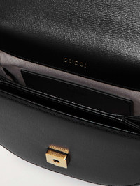 EDITORS'NOTES Gucci's bag is a timeless addition to the brand's vintage-inspired '1955' collection, defined by the signature gold-toned horsebit. It’s been made in Italy from textured leather and has a curved silhouette with a top handle and detachable shoulder strap. The compact interior has two compartments to keep your essentials organized and a slip pocket for your most-used cards. SIZE & FIT This item’s measurements are: - Min. Strap Length: 96cm / 37.8in - Handle Drop: 6.5cm / 2.6in - Depth: 5cm / 2in - Handle Length: 7cm / 2.8in - Max. Strap Length: 109cm / 42.9in - Height: 15cm / 5.9in - Width: 17cm / 6.7in DETAILS & CARE - Black textured leather - Top handle, detachable shoulder strap - Internal slip pocket - Canvas lining - Magnetic fastening front flap
