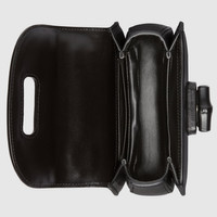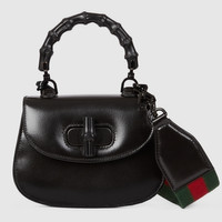 Heritage elements are reimagined with a contemporary twist throughout the Aria collection. An emblem of Gucci's origins, bamboo has appeared throughout the House's collections since the '40s. After over eight decades, the material defines this mini bag in black leather. The accessory is presented with a detachable shoulder strap, adding a versatile feel. - Black leather - Antique gold-toned and bamboo hardware - Lining: leather - Inside: card holder - Handle drop: 3.1" - Detachable strap with 21.7" drop - Weight: .445kg - Mini size: 6.7"W x 4.7"H x 3"D - Made in Italy - The model is 5'6" tall