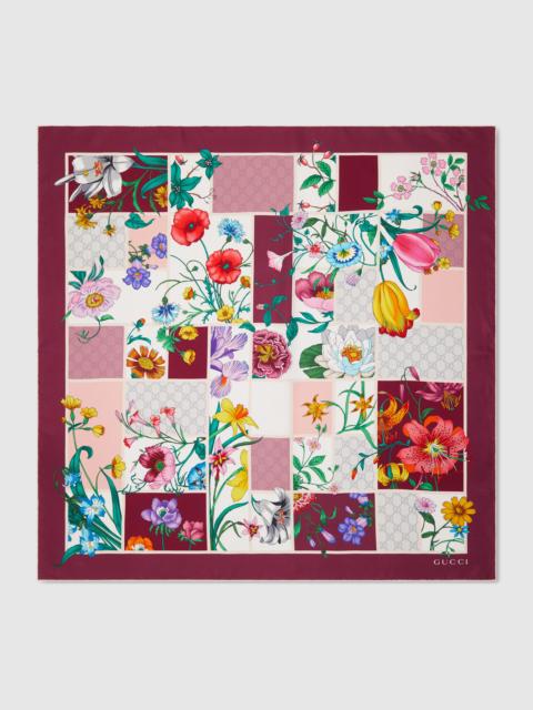 The House's silk accessories collection continues to reinterpret emblematic motifs, from the GG, Web, Flora, bamboo, Horsebit and equestrian inspirations, in sumptuous materials, intricate craftsmanship, and fresh hues. Crafted from a green and multicolor silk twill, this carre is enriched with an allover GG checked Flora print. - Green and multicolor silk twill - Allover GG checked Flora print - 35.4"W x 35.4"L - The dimensions of this item may vary slightly as the hem is hand-sewn - Main fabric: silk 100%