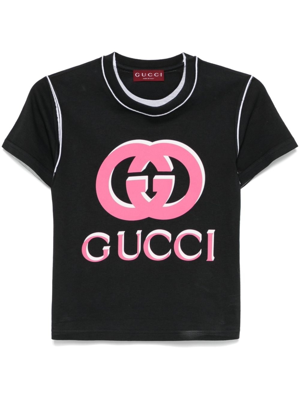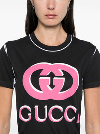 Interlocking G-logo T-shirt Highlights - Black/white/pink - Cotton - Jersey texture - Coated finish - Signature interlocking g logo to the front - Logo print to the front - Contrasting trim - Crew neck - Short sleeves - Straight hem Made in Italy Composition Cotton 100% Washing instructions Machine Wash