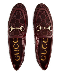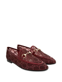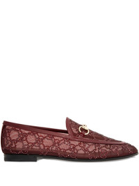 crystal-embellished horsebit loafers Highlights - Dark red - Horsebit detail - Crystal embellishments - Gucci monogram pattern - Mesh fabric - Leather heel counter Made in Italy Composition Outer: Crystal 100%, Mesh 100% Lining: Mesh 100% Sole: Leather 100%