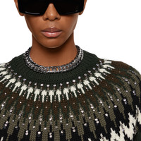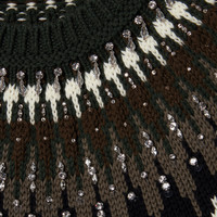 Refined shades of brown, beige, and orange echo the hues of nature's changing landscape. Versatile and timeless, the color palette is easily interspersed within an everyday wardrobe. This oversized sweater is presented in a Norwegian wool jacquard and features a crystal embroidery. - Dark green wool jacquard with Norwegian motif - Crystal embroidery - Crewneck - Dropped shoulder - Long sleeves - Rib trim - Sleeves Length: 19.4 " based on a size S (IT) - Oversize fit - Length: 24.4 " based on a size S (IT) - Made in Italy