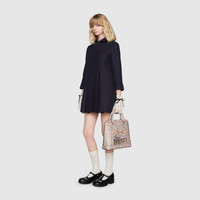 The Gucci Horsebit 1955 top handle bag is introduced within an exclusive collaboration for Fall Winter 2020, presenting Liberty London’s emblematic floral prints within a special collection of accessories and ready-to-wear. With its collection of fine ornaments, fabrics and objets d’art from around the world, the Tudor revival luxury department store founded in 1875 invoked social change in interior design and dress to the point that the Art Nouveau period in Italy is called 'Liberty Style'. Floral printed leather defines the top handle shape, with the printed phrase ‘Gucci Liberty’ in honor of the special mash-up. - Online exclusive - Light pink and light blue floral print by Liberty London on ivory leather - 'Gucci Liberty' print - Gold-toned hardware - Cotton linen lining - This product contains leather made through an alternative metal or chrome free tanning process, reducing the environmental footprint compared to traditional methods. - Horsebit detail at the front - Protective metal feet at the bottom - Interior zipper pocket - Two interior open pockets - Interior phone pocket - Leather top handles with 3.9" drop - Detachable and adjustable leather shoulder strap with 22" drop - Extended double zipper closure - Weight: 1.1kg approximately - Medium size: 11.8"W x 11"H x 4.3"D - Made in Italy - The model is 5'7" tall