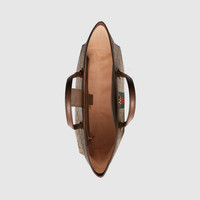 A classic combination of the House's most defining codes—the GG motif and Web stripe—the world of Ophidia continues to evolve, incorporating new shapes and silhouettes each season. With recognizable design elements in a practical new shape, this new medium sized tote is trimmed with textured leather and topped with Double G hardware. Thanks to its long leather handles, the style can also be carried as a shoulder bag. - Beige/ebony GG Supreme canvas, and brown leather trim - Green and red Web - Gold-toned hardware - Microfiber lining with a suede-like finish - This product contains leather made through an alternative chrome free tanning process, reducing the environmental footprint compared to traditional methods. - Double G - Interior zipper pocket - Double leather handles with 10" drop and 21" length - Magnetic snap closure - Weight: .71kg approximately - Medium size: 15"W x 11"H x 5.5"D - Made in Italy - The model is 5'10" tall - Fits up to: iPhone Pro Max/Plus, Airpods, long wallet, and lipstick