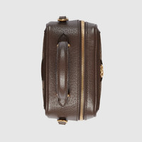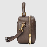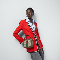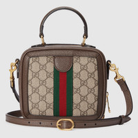 The Ophidia top handle bag highlights one of the House's most emblematic materials with a defined structure. This beige and ebony GG Supreme canvas version features a detachable shoulder strap which lends versatility to styling, allowing it to be worn as a crossbody or shoulder bag. - Beige and ebony GG Supreme canvas - Brown leather trim - Gold-toned hardware - Green and red Web - Part of the - selection, this product is embedded with NFC technology—an innovative way to authenticate and experience your item digitally. - Cotton linen lining - Double G - Top handle with 3.1" drop - Detachable adjustable shoulder strap with 21.7" drop - Zip closure - Weight: 1.1lbs, approximately - Mini size: 6.7"W x 6.5"H x 3.7"D - Made in Italy - Fits up to: iPhone Pro, Airpods, small wallet, and lipstick