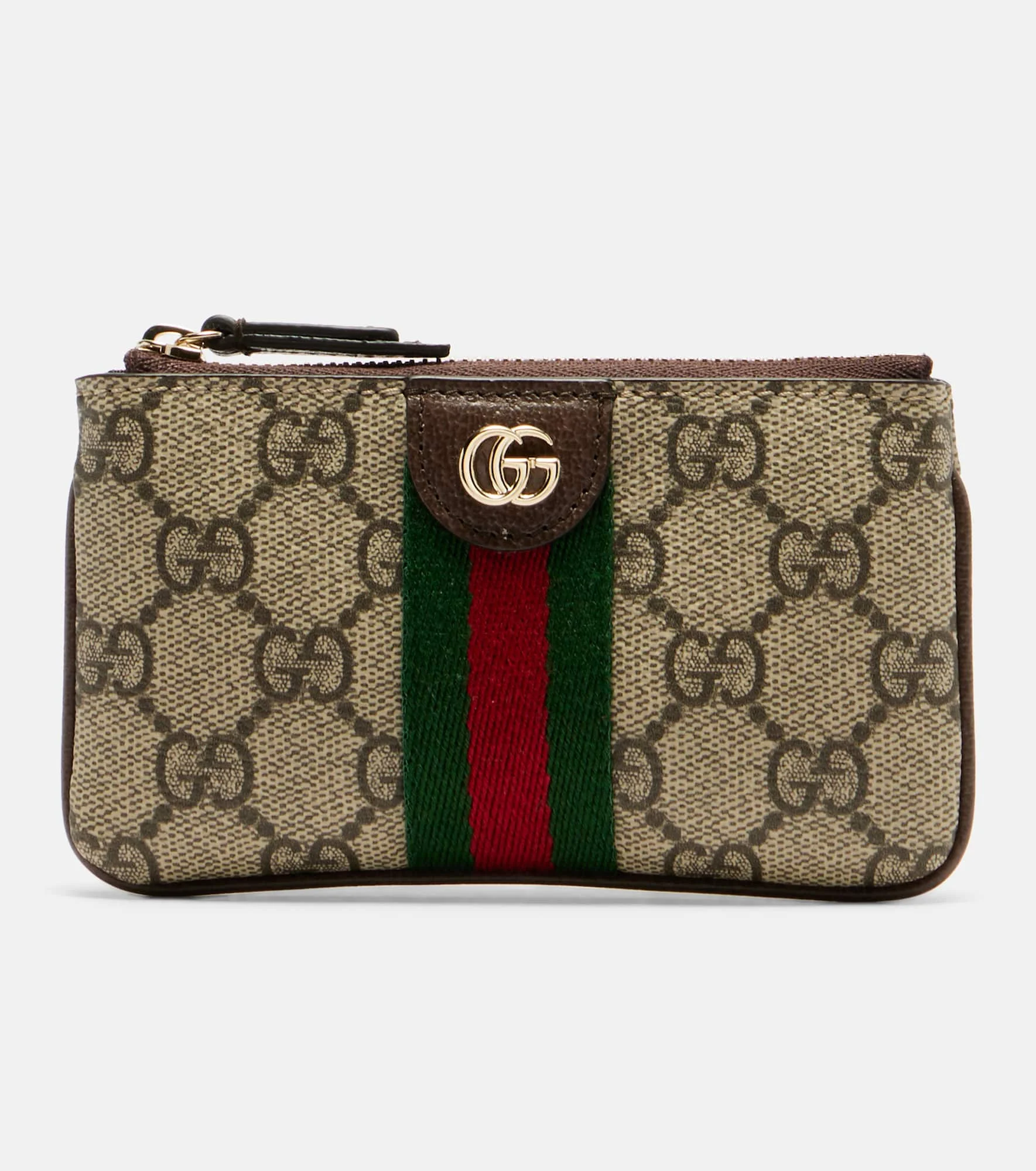 Debuted in 1951, Gucci's signature green and red Web stripe was inspired by equestrian saddle straps. It's the focus of this Ophidia coin purse, crafted from GG coated fabric and finished with soft leather trims. Product Details - Material: canvas - Lining: fabric - Made in Italy - Designer color name: B.Eb/M.White/Brb - Item color: beige - Trim: leather - Closure: zipped top - Includes: dust bag, box - Item number: P01106608 Size & Fit - Height 8cm-3" - Width 14cm-5.5"