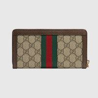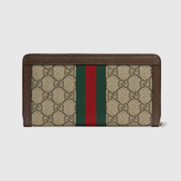 First used in the 1970s, the GG logo was an evolution of the original Gucci rhombi design from the 1930s, and from then it's been an established symbol of Gucci's heritage. The zip around wallet combines the signature motif with the Web stripe—a timeless pairing that pays homage to Gucci's roots. - Beige/ebony GG Supreme canvas, with brown leather trim - Green and red Web - Gold-toned hardware - Double G - Twelve credit card slots and three bill compartments - Zipper coin pocket - Zip around closure - 7.5"W x 4.5"H x 1"D - Made in Italy