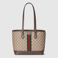 The Ophidia collection evokes the House’s heritage with the signature Web stripe and Double G emblem in light gold-toned finish. The styles are crafted from soft GG Monogram coated fabric, featuring green cotton lining inside. - Beige and dark brown GG canvas - Brown leather trim - Light gold-toned hardware - Green cotton lining - Double G - Web - Inside: 1 zip pocket - 5.1" handle drop - 11.8" strap drop - 12.2"W x 9.4"H x 5.1"D - Weight: 1.5lbs approximately - Made in Italy