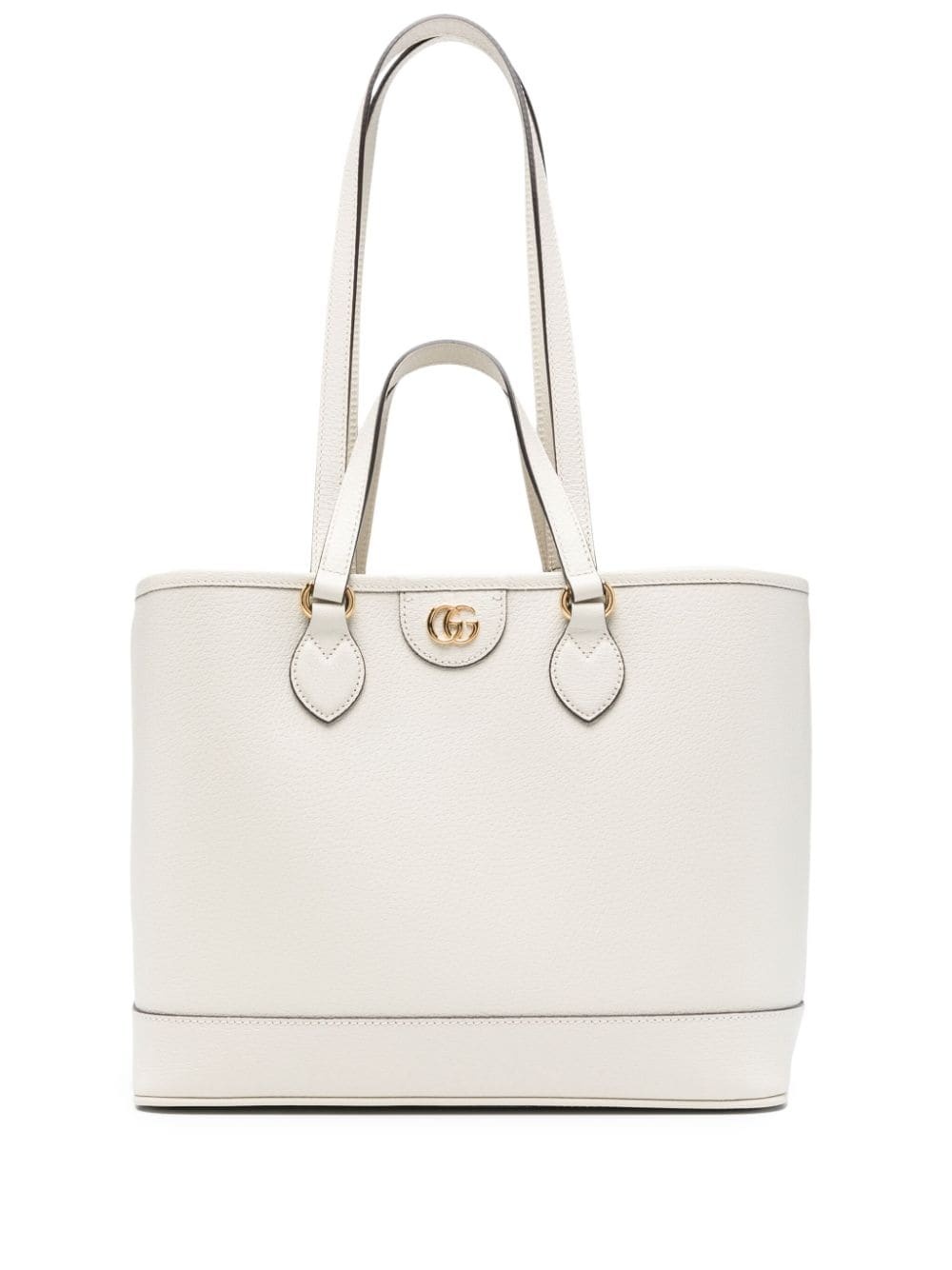 Ophidia medium tote bag Highlights - Cream white - Leather - Panelled design - Tonal stitching - Two flat shoulder straps - Two flat top handles - Signature double g logo - Main compartment - Internal logo patch - Cotton lining - Gold-tone hardware - Open top - This piece comes complete with a protective dust bag. Made in Italy Composition Outer: Leather 100% SIZE & FIT Model measurements Height 5 ft 11 in(1.81 m) Bust/Chest 32.67 in(83 cm) Hips 35.43 in(90 cm) Waist 23.62 in(60 cm) Measurement DEPTH 5.11 in(13 cm) HANDLE 5.9 in(15 cm) HEIGHT 9.44 in(24 cm) STRAP 11.81 in(30 cm) WIDTH 11.81 in(30 cm)