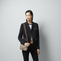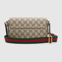 The world of Ophidia continues to evolve, incorporating new shapes and materials each season. Crafted from beige and ebony GG Supreme canvas, this mini bag is further enriched by the Double G hardware and a Web shoulder strap. - Beige and ebony GG Supreme canvas - Brown leather trim - Gold-toned hardware - Cotton linen lining - Double G - Inside: 1 open pocket - Adjustable Web shoulder strap with 21.6" drop - Snap button closure - 8.7"W x 5.1"H x 1.6"D - Made in Italy - Fits up to iPhone Pro Max/Plus, Airpods, small wallet, and lipstick