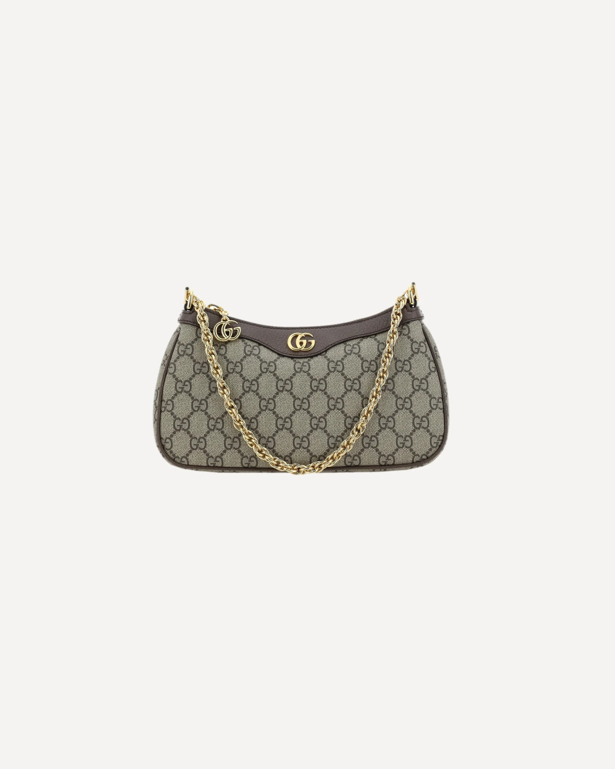 Ophidia Shoulder Bag by Gucci, all-over applied GG Supreme pattern, webing shoulder strap with iconic brand colors, contrasting garnet leather trim, gold-plated adjustable and removable chain strap, gold-plated and applied iconic GG logo detail embossed on the front, zippered top closure with leather tassel, interior welt pocket. DETAILS - Sku: 735132FABLE_9442 - Season: SS26 - Dimension: 25x15.5x6 - Composition: GENERAL 20% Cotton 60% Polyurethane 20% Polyester - MADE IN ITALY