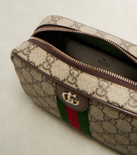 Crafted in Gucci's signature GG Canvas, the Ophidia Small crossbody bag features an adjustable strap, single-compartment, and an internal slot pocket. The leather-trimmed design is complete with the house's iconic Web Stripe and Double G hardware at the front. Product Details - Material: canvas - Lining: fabric - Made in Italy - Designer color name: B.Eb/M.White/Brb - Item color: beige - Trim: leather - Adjustable shoulder strap - Closure: zipped top - Internal details: internal slot pocket - Includes: dust bag, box - Item number: P01106611 Size & Fit - Height 12,5cm-5" - Width 19,5cm-7.5" - Depth 5cm-2" - Adjustable shoulder strap - Min. length shoulder strap 109cm-43" - Max. length shoulder strap 124cm-49"