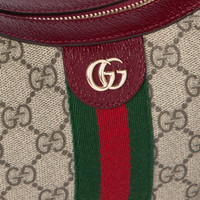 The Ophidia collection evokes the House’s heritage with the signature Web stripe and Double G emblem in light gold-toned finish. The styles are crafted from soft GG Monogram coated fabric, featuring green cotton lining inside. This crescent shape features a delicate chain strap. - Beige and dark brown GG Monogram coated fabric - Gucci Rosso Ancora red leather trim - Light gold-toned hardware - Gucci Rosso Ancora red taffeta lining and green cotton linen lining - Double G - Web - Inside: 2 card slots - 5.9" handle drop - Chain shoulder strap - Zip closure - 7.9"W x 5.7"H x 1.6"D - Weight: 13.9oz approximately - Made in Italy - Fits iPhone Pro Max/Plus, Airpods, small wallet, and lipstick
