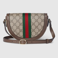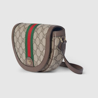 The Ophidia collection evokes the House’s heritage with the signature Web stripe and Double G emblem in light gold-toned finish. The styles are crafted from soft GG Monogram coated fabric, featuring green cotton lining inside. The crescent flap features an emblematic Web trim. - Beige and dark brown GG Monogram coated fabric - Brown leather trim - Light gold-toned hardware - Green cotton linen lining - Double G - Web - Inside: 1 card slots - Adjustable leather shoulder strap drop: 20.1" - Magnetic snap closure - 7.9"W x 5.1"H x 1.8"D - Weight: 13.3oz approximately - Made in Italy - Fits iPhone Pro Max/Plus, Airpods, small wallet, and lipstick