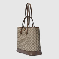 The Ophidia line continues to be one of Gucci signature handbags. New silhouettes are introduced each season, providing versatile accessories to complete any look. Two handles transform this tote bag, allowing it to be styled either as a shoulder bag or top handle. The Double G remains integral to the design, presented in GG Supreme canvas with a brown leather trim. - Beige and ebony GG Supreme canvas - Brown leather trim - Gold-toned hardware - Cotton linen lining - Double G - This item can be used as a shoulder bag or top handle bag - Leather handle with 5.5" drop - Leather shoulder strap with 10.6" drop - Weight: 1.064kg, approximately - Medium size: 15.1"W x 12.6"H x 6.7"D - Made in Italy - The model is 5'8" tall