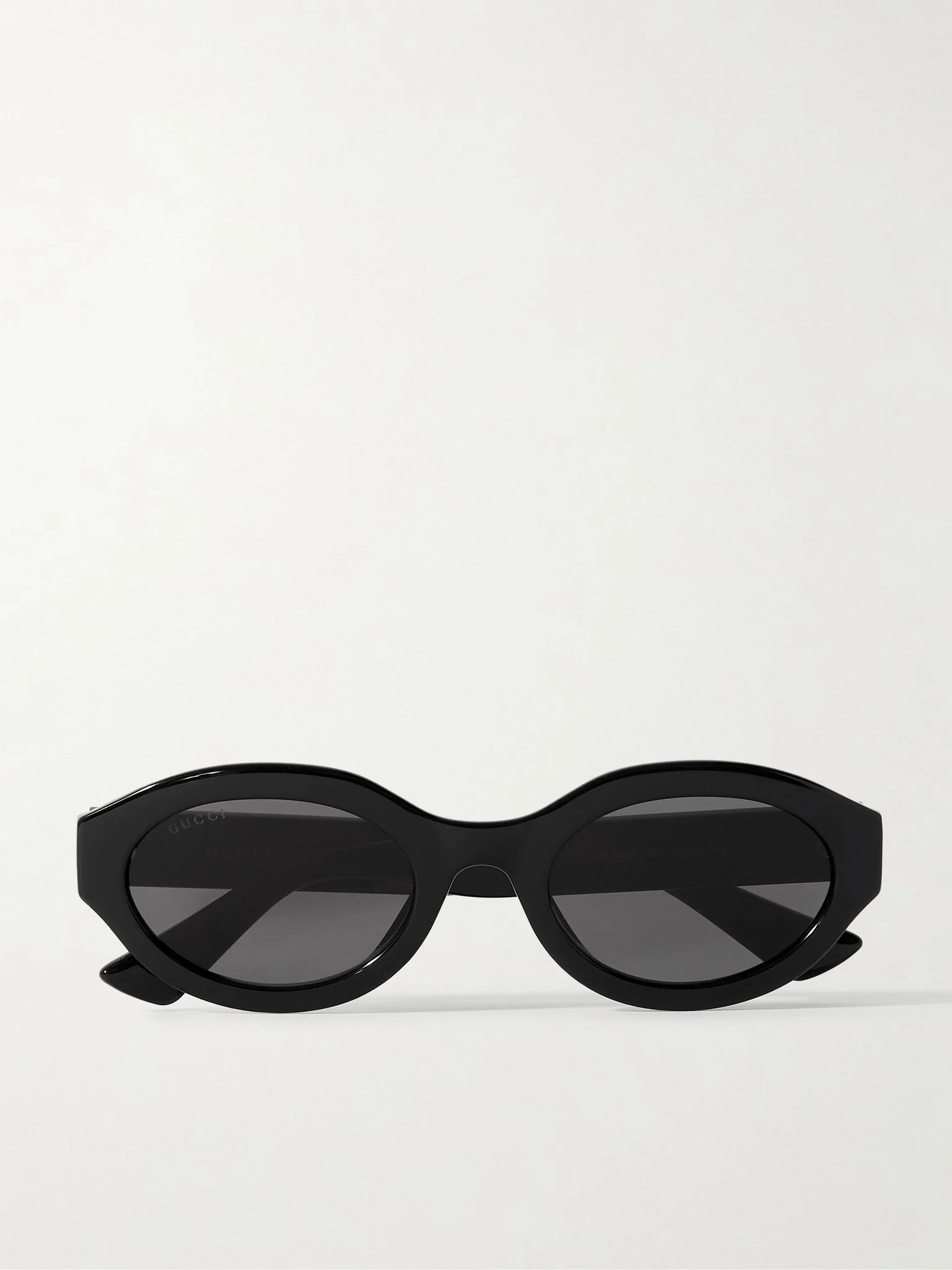 Gucci Eyewear’s sunglasses have a chic, minimalist design, ensuring they'll work with nearly any outfit. This oval-frame pair has been made in Italy from glossy acetate and feature the interlocking 'GG' logo in gold at the temples. Details & Care - Black acetate - Come with a case - 100% UV protection