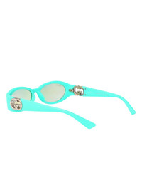 oval frame sunglasses Highlights - Light blue - Gradient lenses - Logo plaque at the arm - Straight arms - These glasses come with a protective case. Made in Italy Composition Plastic 100% SIZE & FIT Measurement Arm Length 5.31 in(13.5 cm) Bridge Width 0.62 in(1.6 cm) Lens Diameter 2.12 in(5.4 cm)