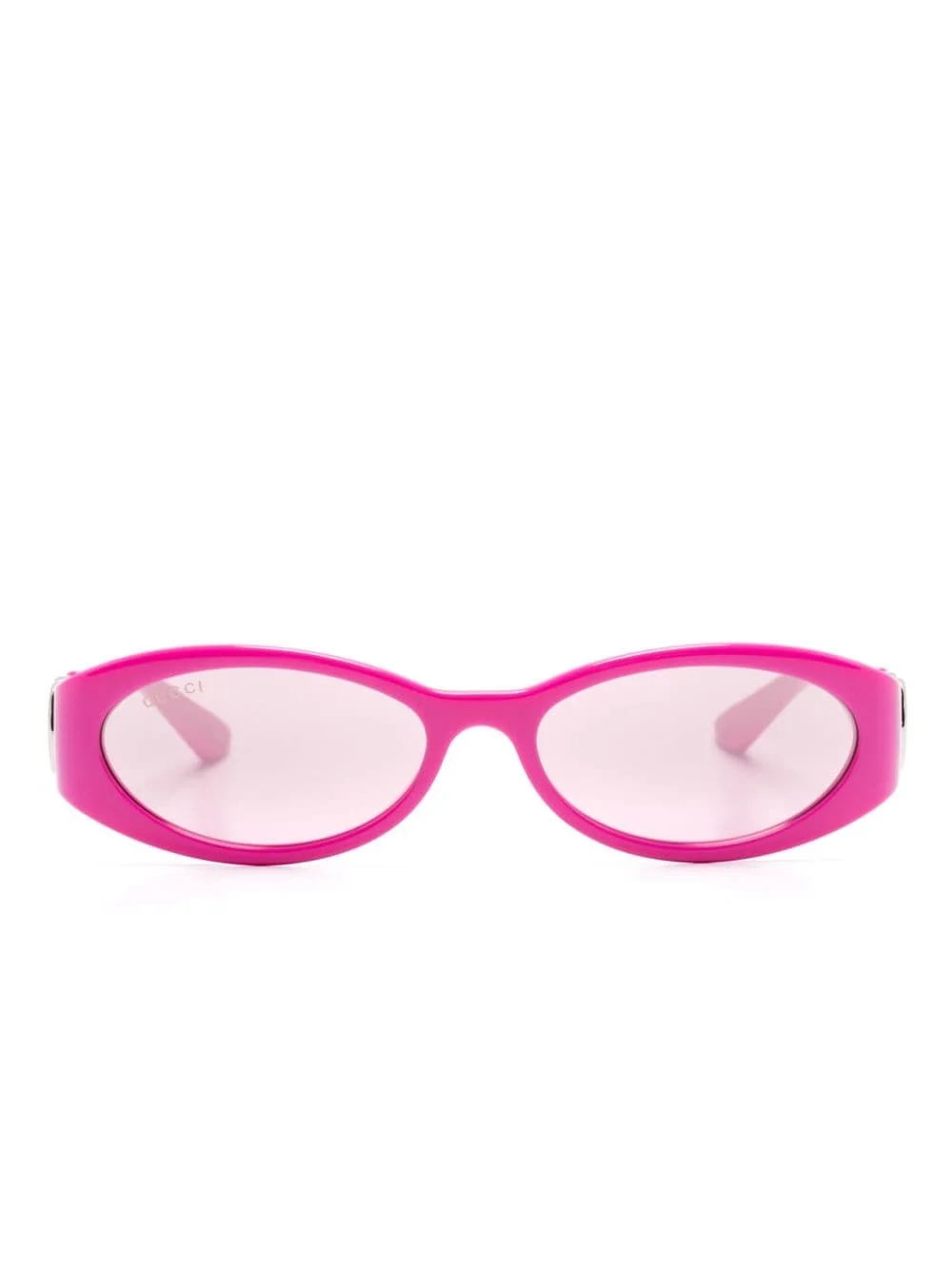 oval-frame sunglasses Highlights - Hot pink - Acetate - Oval frame - Pink tinted lenses - Signature interlocking g logo plaque - Sculpted arms - Curved tips - These glasses come with a protective case. Imported Composition Acetate 100% SIZE & FIT Measurement Arm Length 5.31 in(13.5 cm) Bridge Width 0.62 in(1.6 cm) Lens Diameter 2.12 in(5.4 cm) Total Width 5.39 in(13.7 cm)