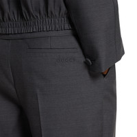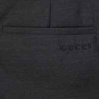 In the Spring Summer 2025 collection, unexpected tailoring is introduced through precise silhouettes. This straight pant features split hem and an oversize, low waist fit. - Grey lightweight wool - Gucci embroidery detail - Unlined - Belt loops - Two side pockets - Split hem - Hook and zip closure - Oversize, low waist fit - Length: 47" based on a size 40 (IT) - Made in Italy - The model is 5'8" and is wearing size 38 (IT)