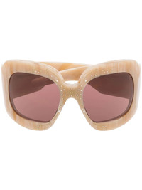 oversized tinted sunglasses beige gem embellishment oversize frame tinted lenses These glasses come with a protective case. Made in Italy Composition Acetate 100% SIZE & FIT Measurement Arm Length 4.33 in(11 cm) Bridge Width 0.78 in(2 cm) Lens Diameter 2.36 in(6 cm) Total Width 5.59 in(14.2 cm)