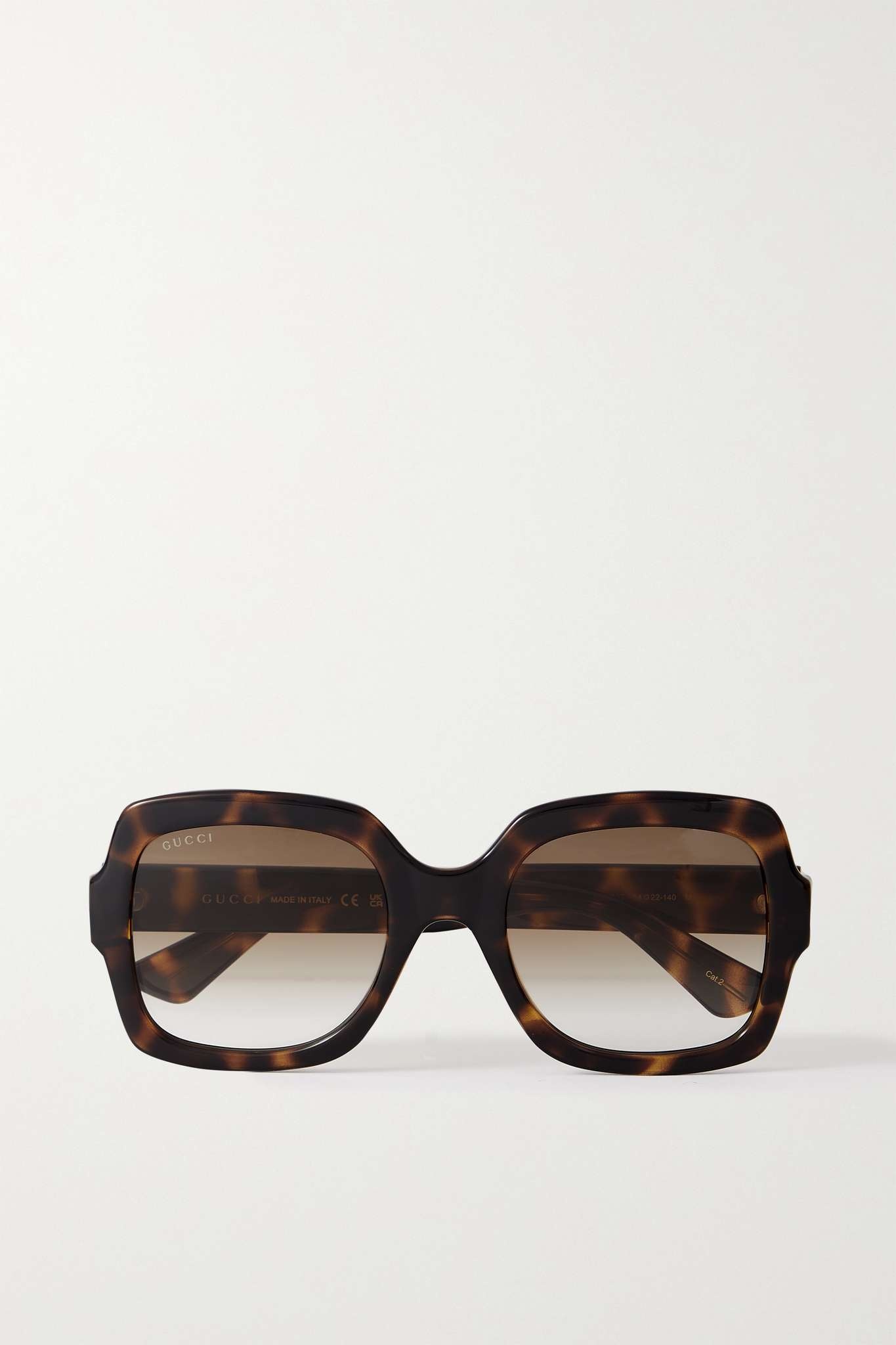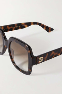 EDITORS'NOTES The right pair of sunglasses can instantly transform your look. Gucci Eyewear's oversized pair has been crafted from glossy tortoiseshell acetate and fitted with gradient lenses. Compliment the logo-embellished arms with gold earrings. DETAILS & CARE - Tortoiseshell acetate - Come with a case - 100% UV protection