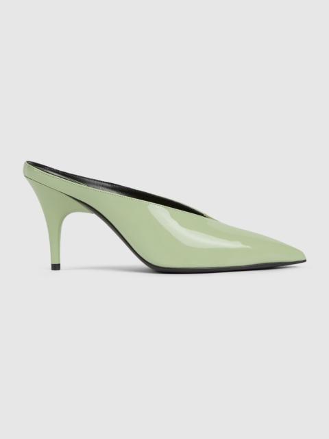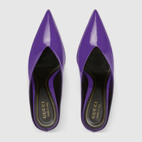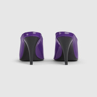 In the Fall Winter 2025 collection, a bold expression of femininity, this women's heeled mule is presented in glossy patent leather with a sharp pointed toe. The sleek silhouette channels a sense of contemporary sophistication, blending retro undertones with modern elegance. - Violet patent leather - Pointed toe - Leather sole - Mid-heel - Height: 3.3" - Made in Italy