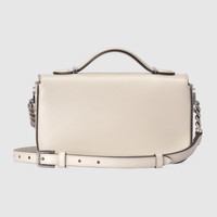 The Petite GG mini chain shoulder bag has a softly structured shape and a zip top closure, completed by the Double G. The leather shoulder strap is adjustable, allowing it to be styled as a crossbody, whereas the classic white leather draws attention to the line's monogram hardware. - White leather - Palladium-toned hardware - Double G - Inside: 1 zip pocket - Adjustable and detachable leather shoulder strap with 17.7" drop and detachable chain shoulder strap with 11.8" drop - Push lock closure - Mini size: 8.2"W x 3.9"H x 1.9"D