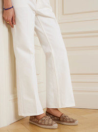 Pilar horsebit-embellished leather-trimmed logo-jacquard canvas espadrilles Camel