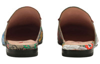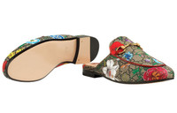 A special collection combines two of the House's most distinctive designs into an unexpected and contemporary fabric, animating emblematic silhouettes such as this pair of Princetown slippers. The historic Flora motif, first presented by Vittorio Accornero in the '60s, is layered over the House monogram for a modern take on the two archival patterns. The floral slides are finished with vivid red leather accents and the Horsebit detail. - Beige/ebony GG Supreme canvas with Flora print, a material with low environmental impact - Red leather trim - Created using a special holographic printing technique, this item’s dedicated packaging features a striped tie dye effect and tropical inspired image of palm trees. - Horsebit detail - Elongated toe - Leather sole - .4" height - These shoes run small, we recommend sizing up half a size - Made in Italy - Due to the printing technique used, the placement of the pattern will vary from item to item