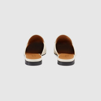 The Princetown slipper continues to make an impact in our classic leather with our symbolic gold-tone Horsebit. - White leather - Women's - Horsebit detail - Leather sole - Flat - .4" heel - These shoes run small, we recommend sizing up half a size - Made in Italy