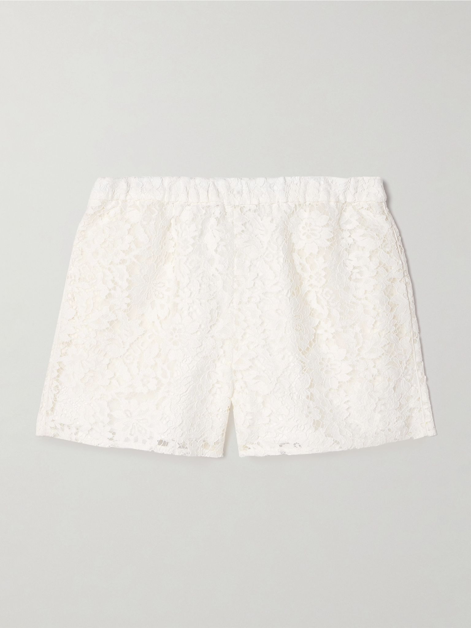 Gucci's shorts are made from corded lace and printed with the same red and dark-green 'GG' logo as the matching T-shirt. They have a fully removable lining and a flexible elasticated waistband. Details & Care - Ivory, red and dark-green corded lace - Pull on - 75% acetate, 25% silk - Dry clean