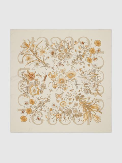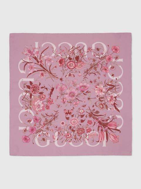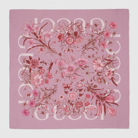 The historical Flora print is reimagined for the Cruise 2025 collection. The recognizable pattern appears atop a selection of silk and soft accessories in pastel hues, adding a romantic feel to the pieces. Here this carre is presented in a pink silk with an allover Gucci and flowers print, bringing a romantic touch to every look. - Pink silk - Allover Gucci and flowers print - 35.4"W x 35.4"L - Made in Italy