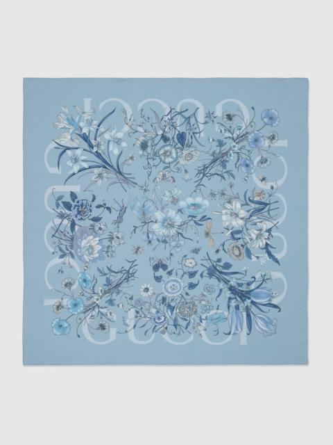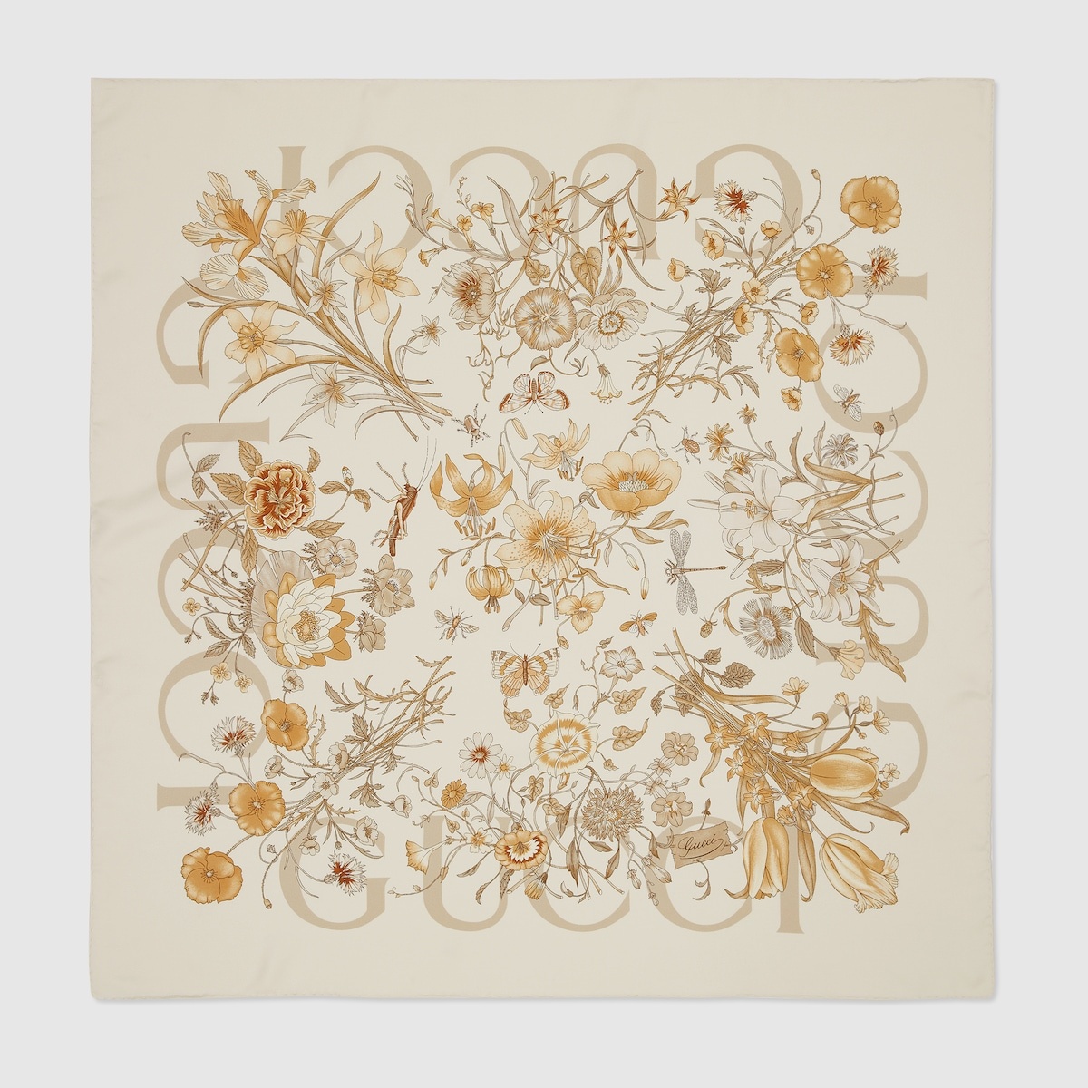 The historical Flora print is reimagined for the Cruise 2025 collection. The recognizable pattern appears atop a selection of silk and soft accessories in pastel hues, adding a romantic feel to the pieces. Here this carre is presented in an ivory silk with an allover Gucci and flowers print, bringing a romantic touch to every look. - Ivory silk - Allover Gucci and flowers print - 35.4"W x 35.4"L - Made in Italy