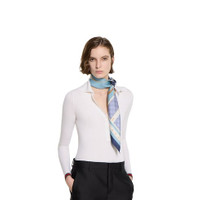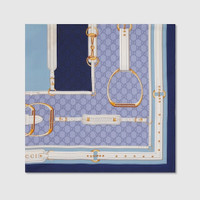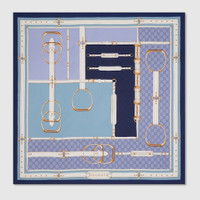 Horsebit details and riding motifs in sophisticated tones pay homage to the House's link with the equestrian world. This carre has been crafted from a silk twill and features an allover Horsebit belts print. - Blue and light blue silk twill - Allover Horsebit belts print - 35.4"W x 35.4"L - Made in Italy - The dimensions of this item may vary slightly as the hem is hand-sewn