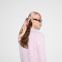 The historical Flora print is reimagined for the Cruise 2025 collection. Floral patterns appear on a selection of silk and soft accessories in pastel hues, adding a romantic feel to the pieces. This carre has been crafted from silk and defined by an allover Gucci, flowers and animals in the garden print. - Pink and multicolor silk - Allover Gucci, flowers and animals in the garden print - 35" x 35" - Made in Italy - The dimensions of this item may vary slightly as the hem is hand-sewn